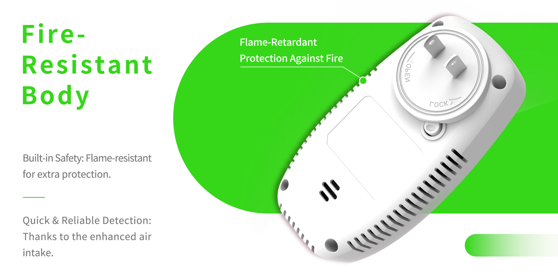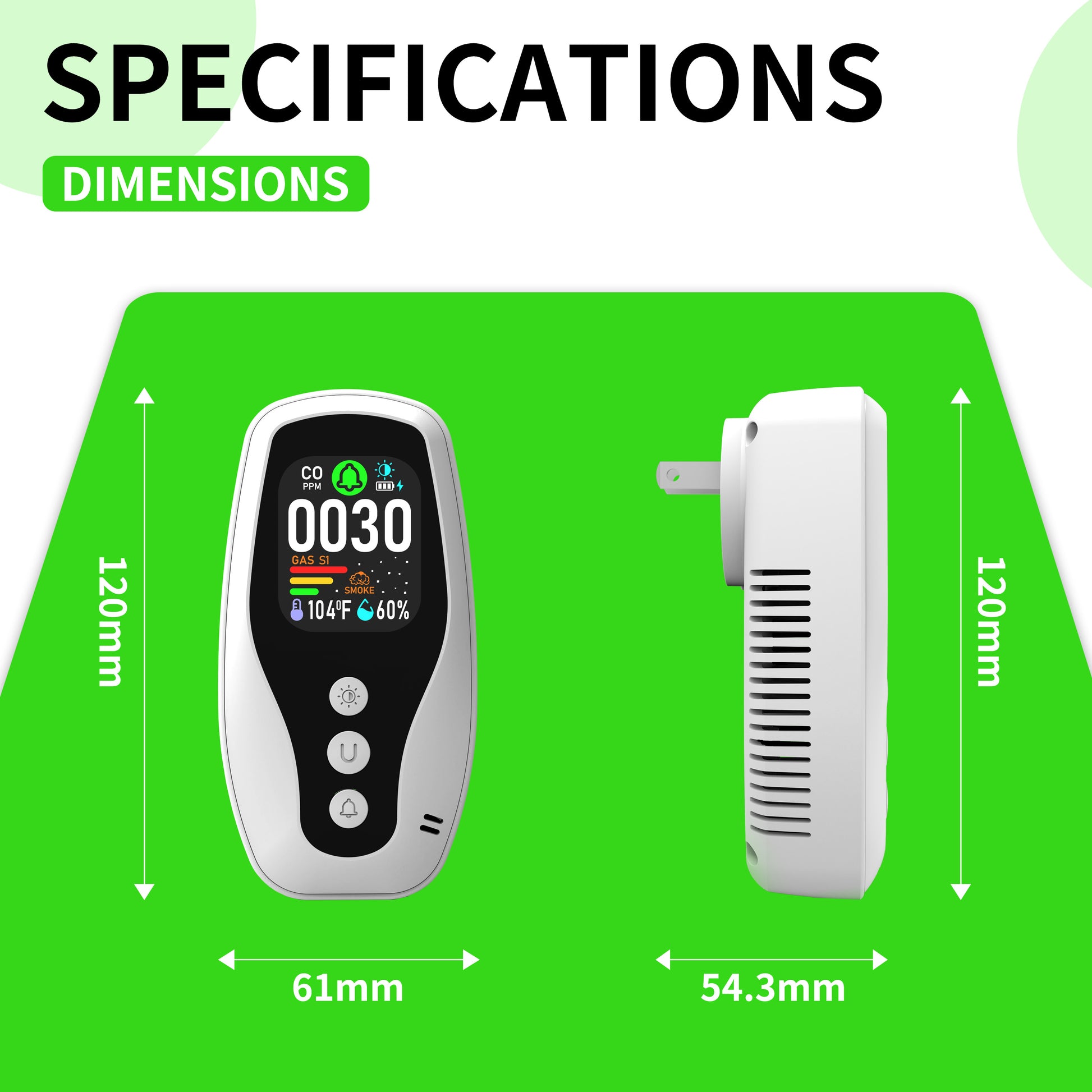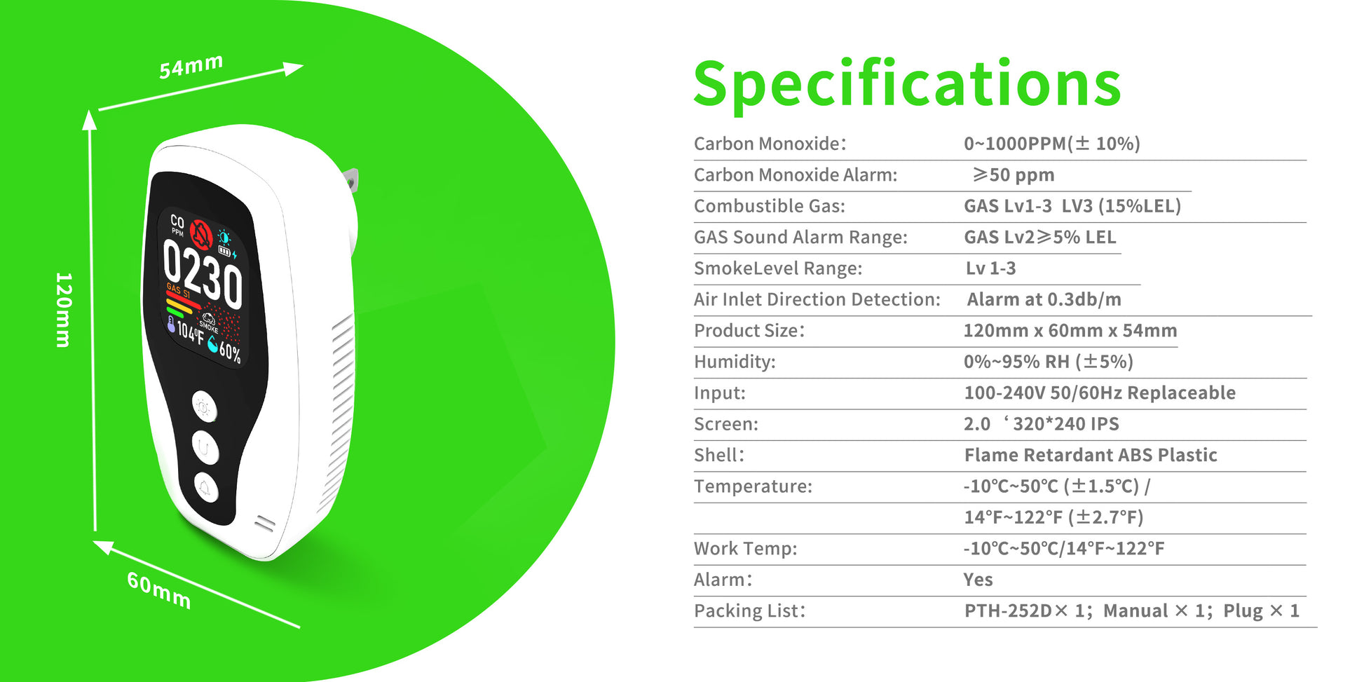 Real Time Monitoring of Carbon Monoxide, Combustible Gas Detection, Smoke Detection, Reverse Compatible Socket, Dual Parameter temperature and Humidity Monitoring, Flame Retardant Protection against Fire.