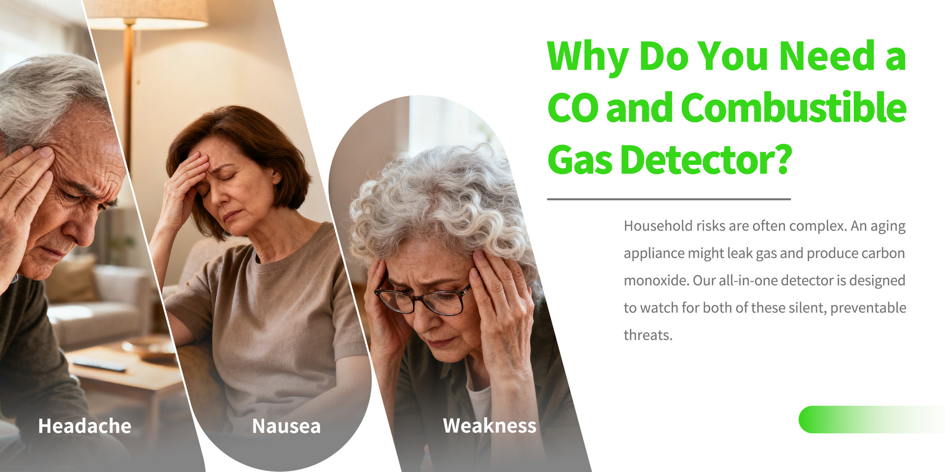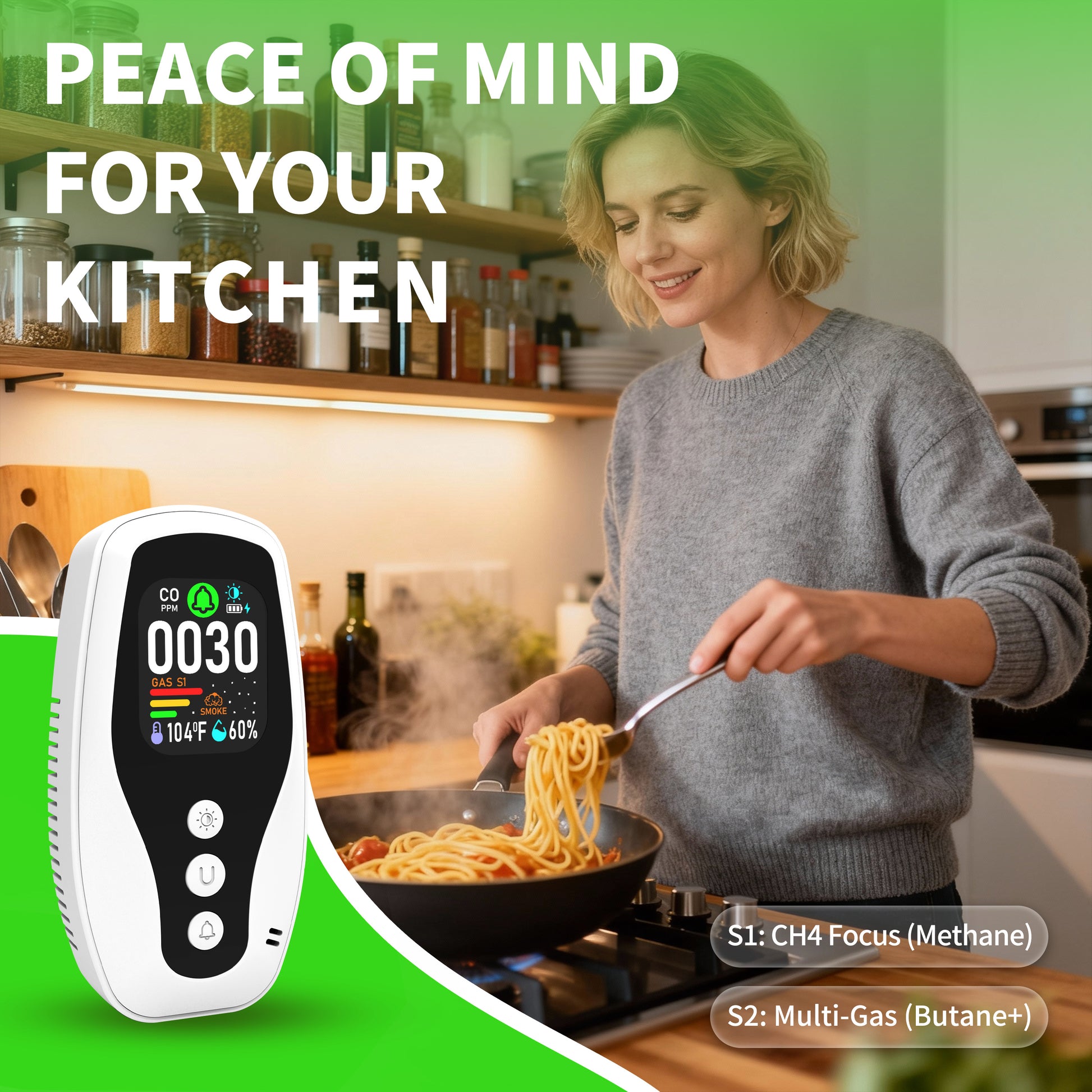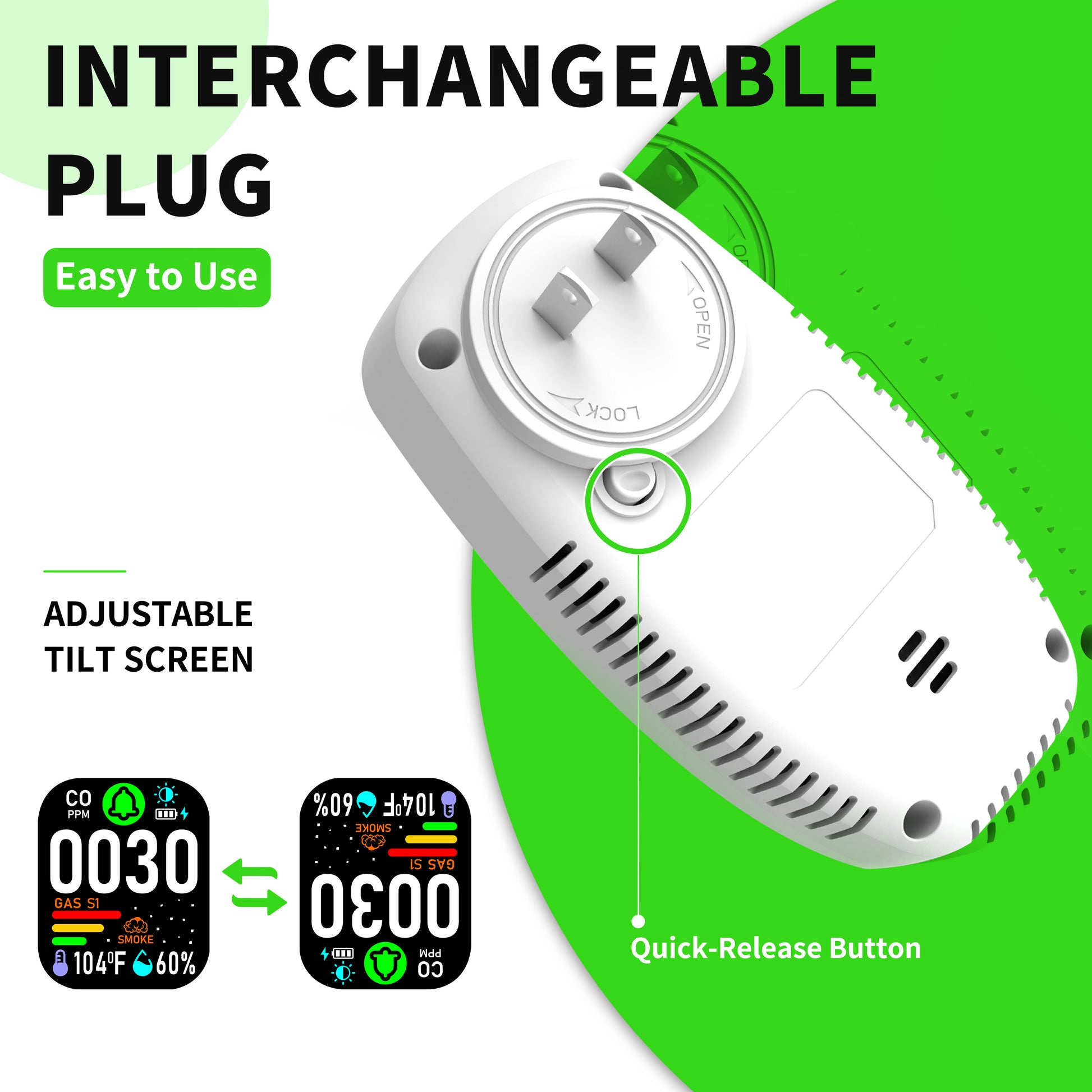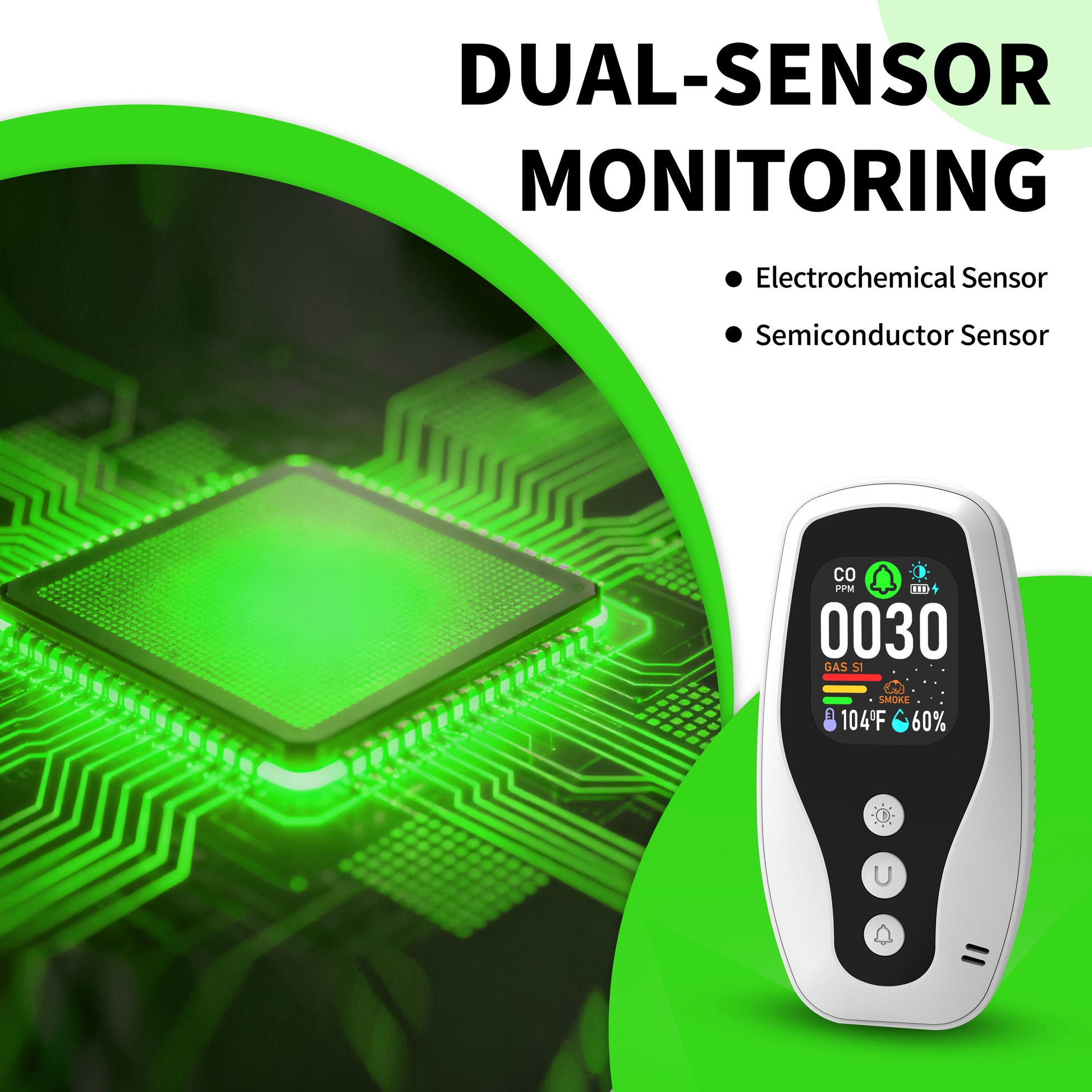 Real Time Monitoring of Carbon Monoxide, Combustible Gas Detection, Smoke Detection, Reverse Compatible Socket, Dual Parameter temperature and Humidity Monitoring, Flame Retardant Protection against Fire.