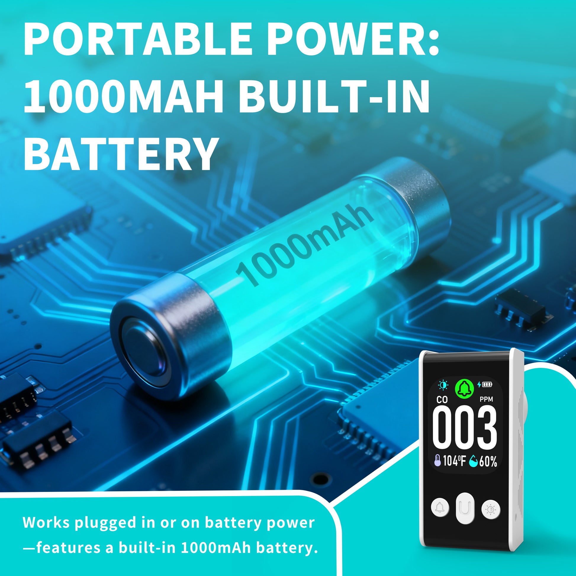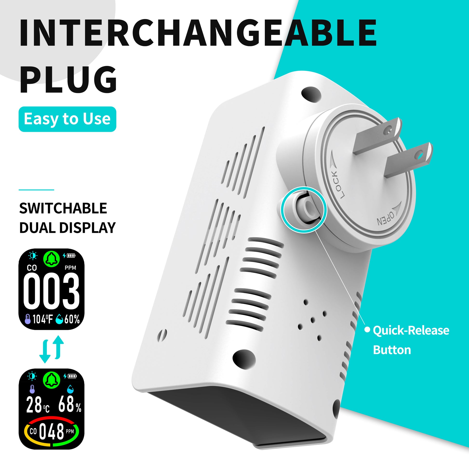 - Plug & Play in Seconds with Smart Self-Calibration & Back-Up Battery No tools, wiring, or complex setup. Simply plug into any standard outlet for instant 24/7 monitoring, perfect for any room. Features one-touch self-calibration to adapt to your environment and a built-in 1000mAh battery that ensures uninterrupted safety during power outages. Ideal for homes, apartments, RVs, and offices.