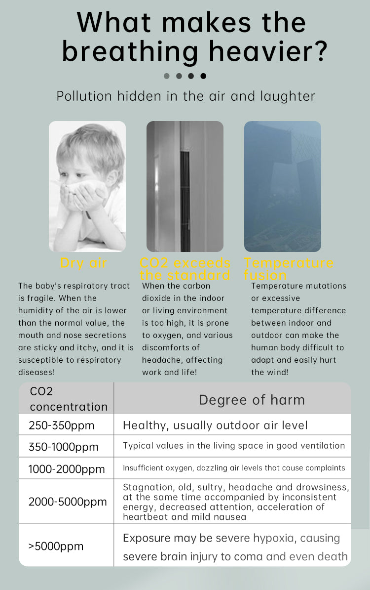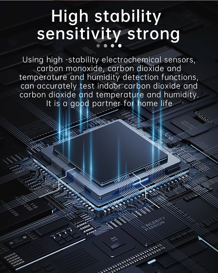 - Audible & Visual Alarm: This CO&CO2 detector allows you to set custom alarm thresholds for both CO and CO2. When gas concentrations exceed the set alarm threshold, the device emits an audible alarm, and the ring indicator light below the screen changes color based on the alert level. This dual alert system provides double protection for your safety, ensuring you can respond swiftly and promptly to potential risks